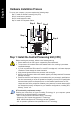 Socket Actuation Lever English Step 1-1: CPU Installation Figure 1. Pull the rod to the 90-degree directly. Figure 2. Locate Pin 1 in the socket and look for a (golden) cut edge on the CPU upper corner. Insert the CPU into the socket. (Do not force the CPU into the socket.) Then move the socket lever to the locked position while holding pressure on the center of the CPU. Step 1-2: CPU Cooling Fan Installation Figure 1.