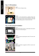 English Step 1-1: CPU Installation Socket Actuation Lever Figure 1. Pull the rod to the 90-degree directly. Figure 2. Locate Pin 1 in the socket and look for a (golden) cut edge on the CPU upper corner. Insert the CPU into the socket. (Do not force the CPU into the socket.) Then m ove the socket lever to the locked position while holding pressure on the center of the CPU. Step 1-2: CPU Cooling Fan Installation Figure 1.