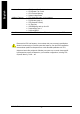 English Hardware M onitor Additional Features Form Factor — — — — — — — — — — — — CPU/System Fan Revolution detect CPU/System Fan Control CPU Overheat Warning System Voltage Detect PS/2 Keyboard power on by password PS/2 Mouse power on STR(Suspend-To-RAM) AC Recovery USB KB/M ouse wake up from S3 Supports EasyTune 4 Supports @BIOS 24.4cm x 21.5cm M icro ATX size form factor, 4 layers PCB. Please set the CPU host frequency in accordance with your processor's specifications.