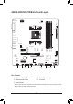 A520M AORUS ELITE Motherboard Layout LED_C2 CPU_FAN ATX_12V Socket AM4 D_LED2 KB_MS_USB ATX DVI HDMI U32_LAN SYS_FAN1 U32_2 Realtek® GbE LAN BAT CODEC F_AUDIO CLR_CMOS F_U32 F_USB1 SATA3 0 1 2 3 DDR4_B2 AMD A520 iTE® Super I/O COM DDR4_B1 80 A520M AORUS ELITE PCIEX1_2 D_LED1 LED_C1 TPM 60 DDR4_A1 PCIEX16 42 M2A_CPU PCIEX1_1 DDR4_A2 M_BIOS AUDIO QFLED SYS_FAN2 F_PANEL QFLASH_PLUS Box Contents 55 A520M AORUS ELITE motherboard 55 Two SATA cables 55 Motherboard driver di