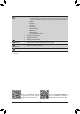 9) F_AUDIO (Front Panel Audio Header) The front panel audio header supports High Definition audio (HD). You may connect your chassis front panel audio module to this header. Make sure the wire assignments of the module connector match the pin assignments of the motherboard header. Incorrect connection between the module connector and the motherboard header will make the device unable to work or even damage it. 9 10 1 2 Pin No. 1 2 3 4 5 Definition MIC2_L GND MIC2_R NC LINE2_R Pin No.