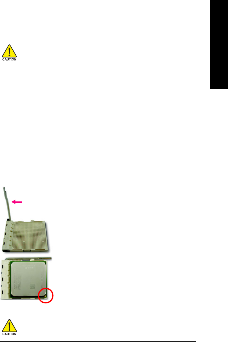 on the CPU by a small triangle that corresponds to a triangle marking on the socket as shown in