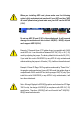 English 12) CD_IN (CD In Connector) Connect CD-ROM or DVD-ROM audio out to the connector. 1 Pin No. Definition 1 2 AUX-L GND 3 4 GND AUX-R 13) AUX_IN (AUX In Connector) Connect other device (such as PCI TV Tunner audio out) to the connector. 1 - 23 - Pin No.