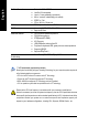 English 18) BATTERY + CAUTION Danger of explosion if battery is incorrectly replaced. Replace only with the same or equivalent type recommended by the manufacturer. Dispose of used batteries according to the manufacturer's instructions. If you want to erase CMOS... 1. Turn OFF the computer and unplug the power cord. 2. Remove the battery, wait for 30 second. 3. Re-install the battery. 4. Plug the power cord and turn ON the computer.