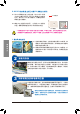 B. AMD CPU的安裝 (若主機板已內建CPU,請略過此步驟) B-1 將CPU插槽拉桿向上完全拉起,將CPU第一腳(標 示小三角形記號處)對齊C P U插槽上的三角型記 號,再將CPU小心放入插槽中,並確定所有針腳 都已進入插槽內。 CPU插槽拉桿 繁 體 中 文 B-2 確定CPU完全插入定位後,一手按住CPU中間的位 置,緩緩地將插座拉桿向下壓至鎖住的位置。 CPU 插槽 第一腳位置 • 切勿強迫安裝CPU至CPU插槽,若插入的方向錯誤,CPU就無法插入,此時請立刻更改插入方向。 • 請勿觸摸CPU插槽的接觸點。為保護CPU插槽,主機板沒有安裝CPU時,請將保護蓋放回。 C.