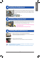 단계 4 메인보드 설치 케이스 뒷면에서 원래의 I/O 실드를 떼어내고 이를 메인보드 I/O 실드로 교체합니다. 메인보드를 I/O 실드 안에 넣어 케이스 안에 위치시킵니다. 메인보드 위의 장착 나사 구멍과 케이스 위의 장착 구멍을 서로 맞춥니다. 나사를 조여 메인보드를 제자리에 고정합니다. I/O 쉴드 단계 5 확장 카드 설치 카드를 지지하는 확장 슬롯의 위치를 찾아 케이스 뒷면 패널에서 슬롯 커버를 벗깁니다. 그리고 나서 확장 카드를 슬롯에 끼웁니다. 나사를 사용하여 확장 카드의 브래킷을 케이스 후면 패널에 고정합니다. PCI Express 그래픽 카드 단계 6 • 확장 카드를 구입하기 전에, 카드의 길이가 케이스에 맞는지 확인 하십시오. • 확장 카드가 슬롯에 완전히 끼워졌는지 확인하십시오. IDE 장치 및 SATA 디바이스의 설치 6-1 DVD-ROM 과 CD-ROM 드라이브와 같은 광학 장치를 설치합니다. 케이스의 전면에서 5.25” 드라이브 베이 커버를 분리합니다.