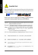 English 14) CD_IN (CD In Connector) Connect CD-ROM or DVD-ROM audio out to the connector. 1 Pin No. 1 2 3 4 Definition CD-L GND GND CD-R 15) F_USB1 / F_USB2 (Front USB Connector) Be careful with the polarity of the front USB connector. Check the pin assignment carefully while you connect the front USB cable, incorrect connection between the cable and connector will m ake the device unable to work or even damage it. For optional front USB cable, please contact your local dealer.