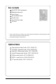 Internal Connectors Back Panel Connectors I/O Controller Hardware Monitor BIOS 1 x 24-pin ATX main power connector 1 x 8-pin ATX 12V power connector 1 x floppy disk drive connector 1 x IDE connector 6 x SATA 3Gb/s connectors 1 x CPU fan header 2 x system fan headers 1 x power fan header 1 x front panel header 1 x front panel audio header 1 x CD In connector 1 x S/PDIF In header 1 x S/PDIF Out header 2 x USB 2.0/1.