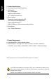 English 2. Product Specifications Convenience to use for both PC and Server . z SATA Interface - SATA 1.0a Compliant - Supports one SATA connector z - Up to 150MB/s data transfer rate Memory Interface - Max amount of memory supported is 4GB - Four 184-Pin/2.5V DDR DIMM sockets z - Supports DDR 266/333/400(Note 2) - Supports DIMM up to 4.2mm thickness (including heat-sink) z Backup Battery - One 1,700mAh lithium battery 3. Product Requirements z z One available SATA (1.