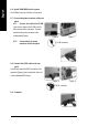 English 8- 6: Install i-RAM BOX into the system Put i-RAM box into the 5.25 inch cd-rom drive. 8- 7: Connect the power connector of the rear panel 8-7-1 Connect the cable of the 5V SB Connect the cable of the 5V SB to the 5V SB connector of the rear panel . Connect another 24 pin power connector to the motherboard (Figure f). 8-7-2 Figure e Connect the 4 pin power connector to the rear panel.
