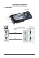 2.2. Hardware Installation Now that you have prepared your computer, you are ready to install your graphics card. Step 1. Locate the PCI Express x16 slot. If necessary, remove the metal cover from this slot; then align your graphics card with the PCI Express x16 slot, and press it in firmly until the card is fully seated. Make sure that the gold edge connector of the graphics card is securely inserted. Step 2. Replace the screw to fasten the card in place, and replace the computer cover. Step 3.