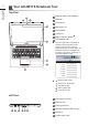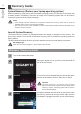 English 2 Your GIGABYTE Notebook Tour Top View 2 1 3 4 5 1 Webcam Status LED Indicator 2 Webcam 3 Light sensor 4 Microphone x 2 5 Power Button 6 TouchPad 7 Battery Indicator Button 8 LED Indicators Press the right button of touchpad to check the remaining battery power. Right-click to show the remaining power percentage. As shown below, the battery life indicator is available when the laptop is shut down, in stand-by or hibernation.