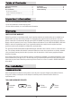 Important Information................................2 Warranty...............................................2 Pre-Installation .......................................2 Planning installation.................................2 Tools and Hardware Required.......................2 Part List ……..........…….........................3 Installation ...................................... ....4 Care and Cleaning ...................................9 Troubleshooting.... .................................