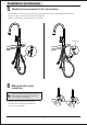 Installation (continued) 3 4 Securing the faucet assembly □ Pull out the hose (J) slowly to recommended position Installing the weight □ Push the pull out hose (J) back inside the faucet (A). □ Install the hose protector (F) onto the mounting shank. □ Install the weight (I) at the point of the hose marking “Weight Here”. where the quick connector (3) stay right out of the mounting shank (G). DO NOT pull out the hose (Q) completely from the faucet (A).