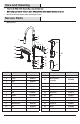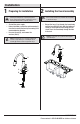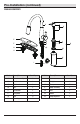 Installation 1 Preparing for installation 2 Installing the faucet assembly CAUTION: Always turn off the water supply before removing an existing faucet or replacing any part of a faucet. Open the faucet handle to relieve water pressure and ensure that the water is completely shut off. □ □ Shut off the water supply. Before installation, remove the quick connector (I) from the free end of the hose by unscrewing it in a counterclockwise direction. □ Unscrew the nut (D), and remove the washers (B & C).