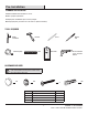 Pre-Installation PLANNING INSTALLATION Estimate installation time: 30 minutes to 1 hour Number of people required: Two Identify all parts and hardware pieces before you begin. When laying out parts, place them on a soft surface to prevent scratching. TOOLS REQUIRED Hammer Phillips screwdriver Measuring Tape Pencil Level Drywall saw Stud Finder Electric drill with 1/8 in. and 1/4 in. drill bit HARDWARE INCLUDED NOTE: Hardware not shown to actual size.