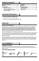 Table of Contents Important Information...............................2 Warranty....................................................2 Pre-Installation..........................................2 Planning Installation............................2 Tools and Hardware Required.............2 Package Contents................................3 Installation.................................................4 Operation...................................................7 Care and Cleaning................................