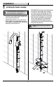 Installation (continued) the soap dispenser 4 Attaching the quick connector 5 Installing assembly □□ Remove the cap (L) from the the pull-down spray hose (K) and the outlet hose (I). □□ Attach the quick connector (F) to the pull-down spray hose (K). □□ Attach the quick connector (F) to the outlet hose (I). Pull down the quick connector (F) to ensure it is secure. □□ Remove bottle (Q), bottle lock nut (P) and washer (O) from shank of dispenser holder (N). Remove pump nozzle (M) from dispenser holder (N).