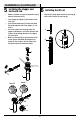 Installation 1 Installing the faucet assembly 2 Securing the faucet □□ Slide the rubber washer (D) and metal washer (E) over threaded rods (T) and lift rod (S). Use the lock nuts (F) to secure the rubber washer (D) and metal washer (E). □□ Attach the extension rod (not included) to one lock nut (F), feed a screwdriver (not included) through the bottom of the extension rod, and then tighten the lock nut (F). Repeat for the second lock nut (F).