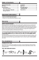 Table of Contents Important Information .............................2 Warranty ...................................................2 Pre-Installation .........................................2 Planning Installation ..............................2 Tools and Hardware Required ...............2 Package Contents ..................................3 Installation ................................................4 Operation...................................................5 Care and Cleaning .......................