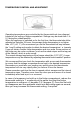 CLEANING AND CARE " We recommend that you switch off the appliance at the socket outlet and pull out the mains plug before cleaning. ** Never use any sharp abrasive instrument, soap, household cleaner, detergent and wax polish for cleaning. " Use luke warm water to clean the cabinet of the appliance and wipe it dry. ** Use a damp cloth wrung out in a solution of one teaspoon of bicarbonate of soda to one pint of water to clean the interior and wipe it dry. ** Make sure that no water enters the lamp housing.