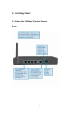 LEDs: LED Color Power Green Status On Indicates proper connection to power supply. OFF Green Status Description The unit is not receiving power Indicates that the device is connected to the WLAN. On On Indicates connection to the WAN port WAN Blinking On WLAN Link is established On Blinking Off — Packet transmit or receive activity No Link activity On LAN Data transmission. Indicates connection is established. On Blinking Off — Data transmissions No LAN connections 2.