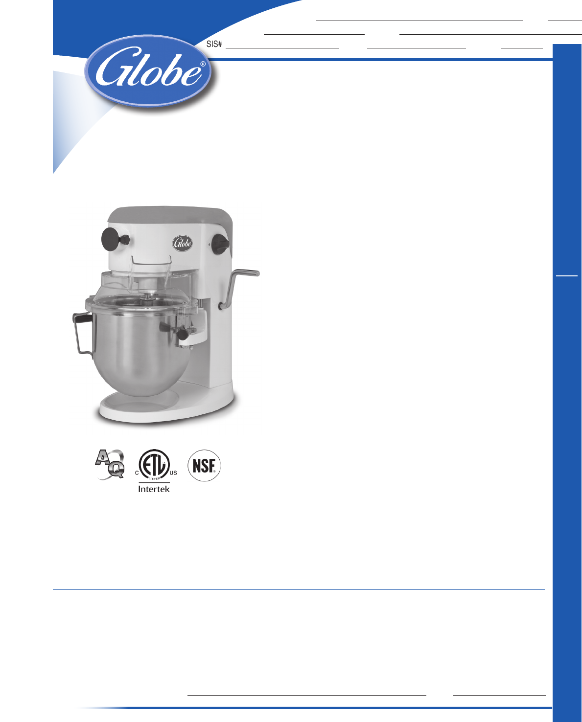 05-2015 Printed in U.S.A. © Globe Food Equipment Company Specifications are subject to change without notice.