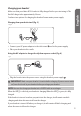 Making a call with Voice Dial* • Press the headset Answer/End button to enter Voice Dial mode. (Consult your mobile phone User Manual for more information about how to use this feature.) English For best results, record the voice dialing tag through your headset. Redialing the last number* • Double tap the headset Answer/End button. Using call waiting and placing a call on hold* • • This lets you put a call on hold during a conversation and answer a waiting call.