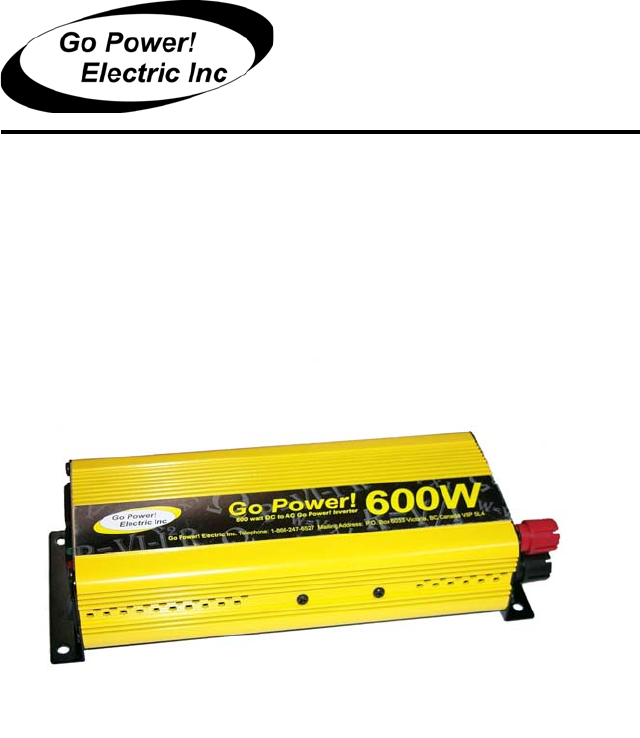 Go P ower! Man ual Po Manual GP-600 Inverter Go Power! Electric Inc. PO Box 6033 Victoria, BC V8P 5L4 Tel: 866-247-6527 Fax: 866-607-6527 Email: info@gpelectric.