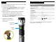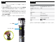 FRANÇAIS SPÉCIFICATIONS TECHNIQUES L’outil lampe de poche est une lumière DEL claire de 110 lumens avec un rayon lumineux réglable. Lampe de poche 1. Branchez l’Outil lampe de poche à la sortie USB du Goal Zero Switch 10 ou à un autre vrai port USB. DEL (sortie) 3W, DEL blanche CREE, 110 Lumens Autonomie sur Goal Zero 4 heures Switch 10 2.