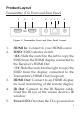 • • • Shut off power and make sure environment is safe before installation Do not plug the HDMI cables and IR cables in/out when the device is in use to avoid cable damage. Make sure they are plugged into the correct ports Use the included DC5V power adapters only. Make sure the specification matches if using 3rd-party DC power adapters Introduction The HDMI CAT Extender with EDID extends HDMI transmission up to 130ft @4K and 230ft @1080p over CAT6/7.