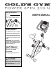 BEFORE YOU BEGIN Congratulations for selecting the new GOLD’S GYM® POWER SPIN 210 U exercise cycle. Cycling is one of the most effective exercises for increasing cardiovascular fitness, building endurance, and toning the body. The POWER SPIN 210 U exercise cycle offers a selection of features designed to let you enjoy this healthful exercise in the convenience and privacy of your home. of this manual. To help us assist you, note the product model number and serial number before contacting us.