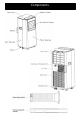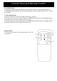 Control Panel and Remote Control This Portable Air Conditioner is designed to be operated in cooling mode, fan mode or dehumidifying mode. When switching between these functions keep an interval of at least 3 minutes between each ON/OFF. Allow the refrigerant to settle by leaving the appliance to stand for two hours after transport or after the unit has been on its side. Ensure the unit is in the OFF setting before connecting it to the mains supply.