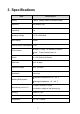 3. Specifications Item Description Protocol Z-Wave (Binary Switch Command Class) Frequency 908.42MHZ( US) Transceiver Yes Operating Voltage AC110~120V/60Hz Max Loading 1500W Stand-by power consumption 0.6 W Green :Z-Wave RF transfer or receive LED Indicator Red : Power Switch power on Switch On / Off (Side Knob Button) Data Rate Up to 40 kbps Operation Range Up to 100 feets Application Indoor use Operation temperature: 10 ~ 40 ̓C Working Environment Storage temperature: -10 ~ 80 ̓C 67.