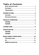 Table of Contents SAFETY INSTRUCTIONS ......................................... 1 COPYRIGHT ........................................................ 1 TRADEMARKS ..................................................... 1 INTRODUCTION ............................................... 2 FEATURES .......................................................... 2 PACKAGE CONTENTS ............................................ 3 PRODUCT OVERVIEW ...................................... 4 FG2200.................................