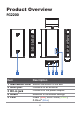 Product Overview FG2200 1 2 3 4 5 Item Description 1 2 3 4 5 Mounts the device to the wall Connects to an Ethernet Connects to the power adapter Restores to the default settings Power (Red); LAN / WAN (Green); Z-Wave® (Blue) Wall Mount Hole RJ45 port DC-in jack Reset LED 4