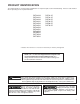 PRODUCT IDENTIFICATION The model number is used for positive identification of component parts used in manufacturing. Please use this number when requesting service or parts information.