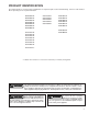 PRODUCT IDENTIFICATION The model number is used for positive identification of component parts used in manufacturing. Please use this number when requesting service or parts information.