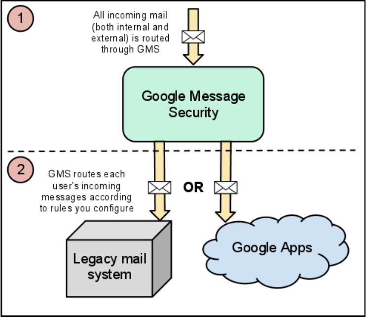 messages are delivered either to a user’s Gmail account or to their legacy mail