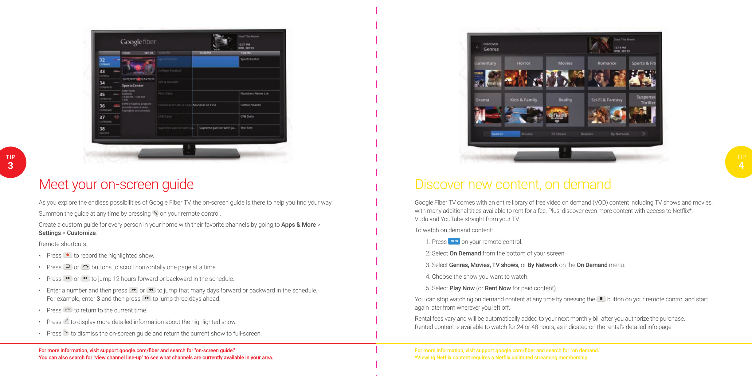 For more information, visit support.google.com/fi ber and search for “on demand.”