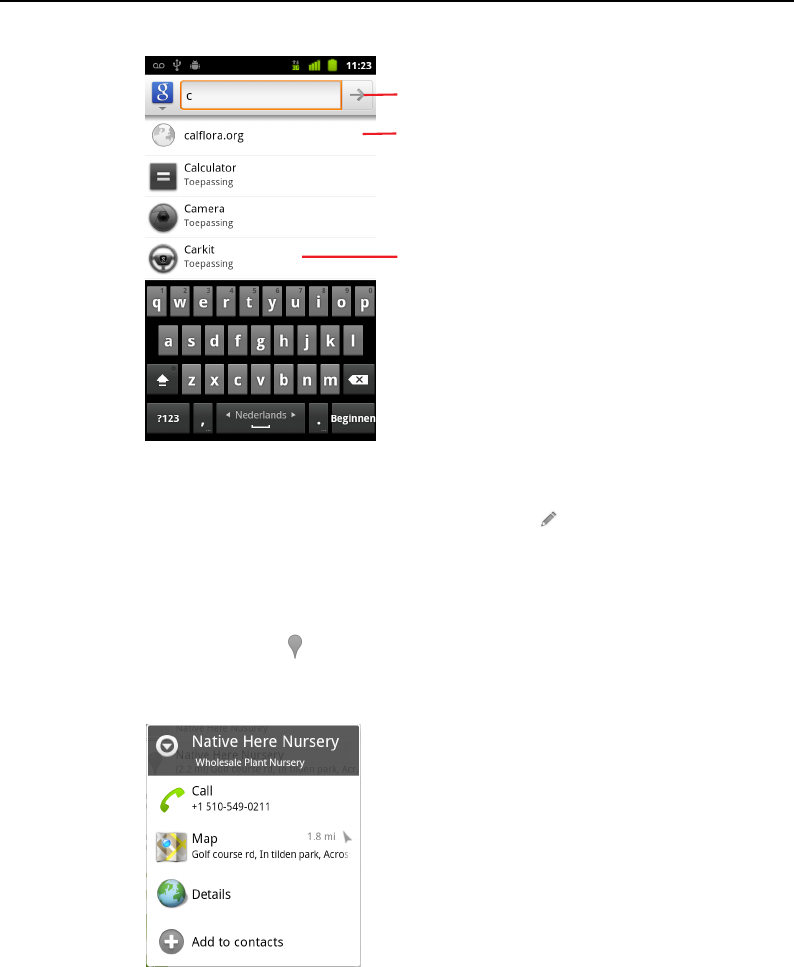 leegmaken. Zie 'Instellingen voor Google Zoeken wijzigen' op pagina 108.