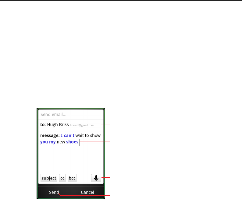 Bij sommige gesproken acties, zoals 'stuur e-mail' en 'notitie aan mezelf', wordt een