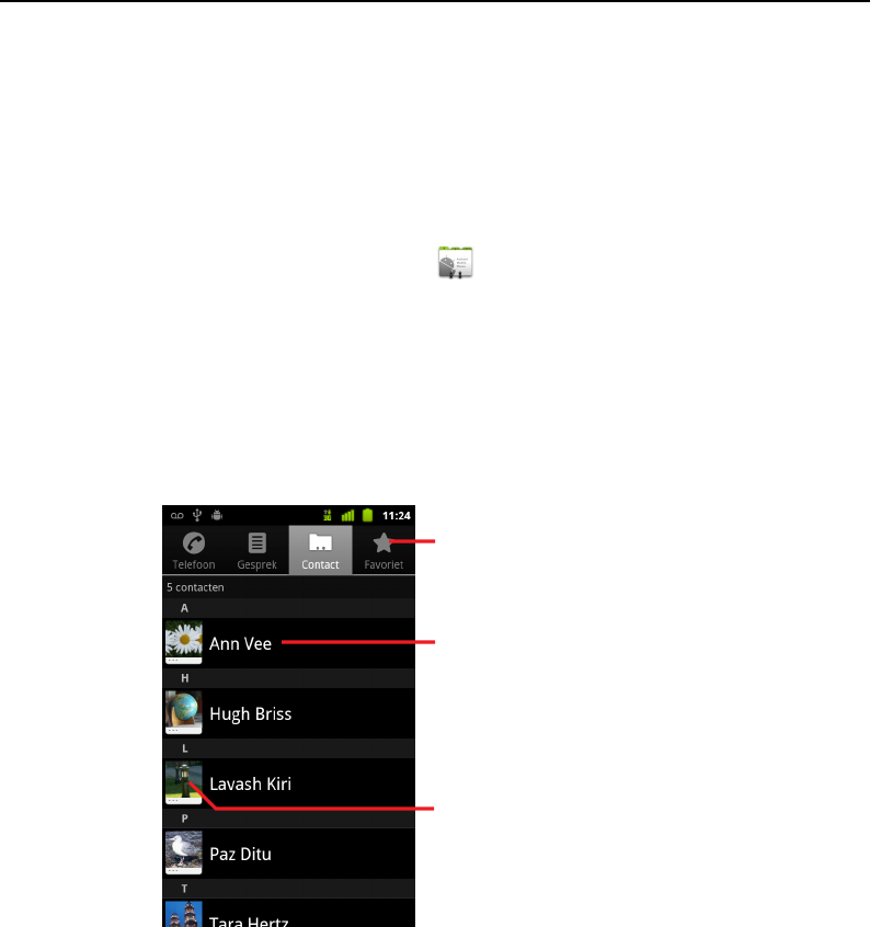 Al uw contacten worden alfabetisch in een schuiflijst weergegeven. Achter elk