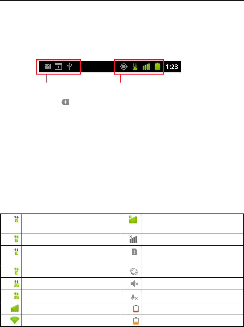 pictogrammen weergegeven voor ontvangen meldingen (links), de status van de