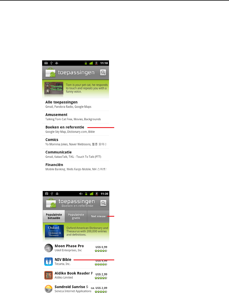 1 Raak op de startpagina van Android Market een topcategorie als 'Toepassingen'