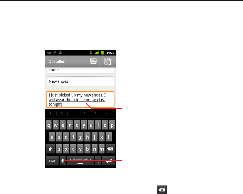 U kunt de tekst die u typt of spreekt, bewerken. Zie 'Tekst bewerken' op pagina 41.