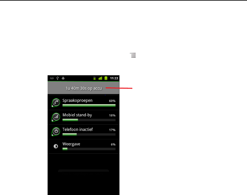 gebruikmaken van de accu. De toepassing die de meeste energie verbruikt, staat