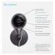 Get started. Look for the light. Nest Cam is on. Connecting to Wi-Fi. The connection is spotty. Blinking green means someone’s watching. Blinking blue means someone’s talking through the speaker. See what your Nest Cam sees. Get a wide-angle view of the room. Or zoom in and enhance for a closer look. Talk and listen. Nest Cam has a mic and speaker so you can hear what’s going on and talk through the Nest app. TIP: When setting up Nest Cam, make sure there isn’t a wall or object limiting its view.