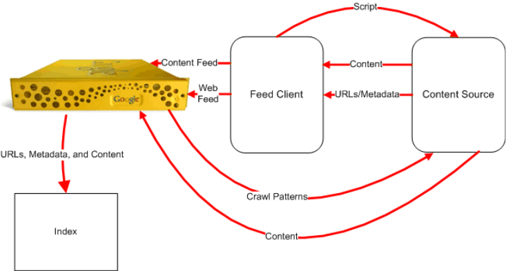 • Feed client—An application or web page that pushes the feed to a feeder process on the search