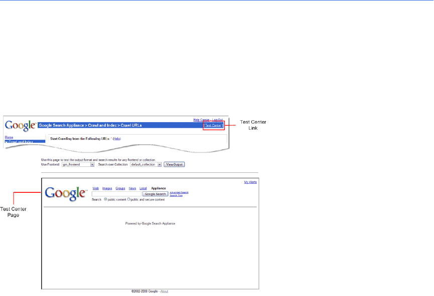 Center. The Test Center enables you to test search across the indexed content, limiting it to specific